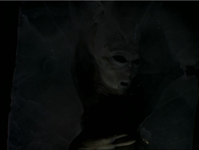 Mulder is calling because he’s heard about an alien body recovered from a mountain in Canada. The tip came from a forensic anthropologist named Arlinsky, with whom Mulder has been in contact for four years. Arlinsky wants to turn the body over to Mulder for authentication as he doesn’t trust anyone else. He wants Scully’s opinion. She says she doesn’t have one. A minor argument ensues about belief and proof and the necessity of proving things that you take on faith anyway, but eventually Scully agrees to take a look at some samples. For what it’s worth, she doesn’t think you can prove the existence of God, which is a nice counterpoint to Mulder’s endless quest for evidence of unspeakable things.