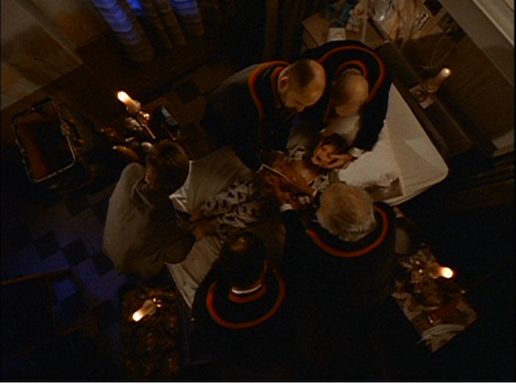 Charlie then has a fit and is taken to hospital. Doctors admit him for observation. Later that night, a nurse comes in to give him a shot to help him sleep. He panics, and Michael appears behind her and knocks her out. Michael then goes to Maggie and persuades her to bring him home. The alarm is raised when our heroes find Charlie still in his room and see Maggie leaving with Michael from the window. The nurse comes to and says Charlie didn’t attack her, it was “the other one”. Scully goes after Maggie while Mulder calls in the old men; the “Calusari” of the title. Maggie had earlier explained that they are responsible for ensuring the correct observance of sacred rites in Romania.