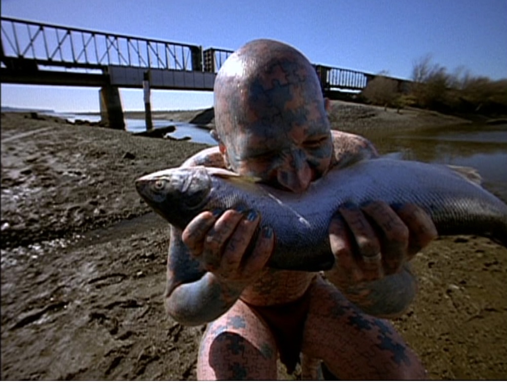Mulder is on a morning jog down near the river when he sees a heavily-tattooed man crawl out of the water like Gollum and bite into a live fish.