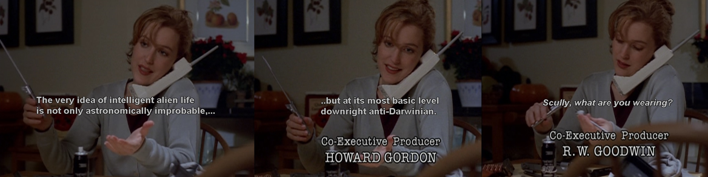 Mulder: “Scully, if an alien civilisation were technologically advanced enough to build and send artificially intelligent robotic probes to the farthest reaches of space, might they not have also been able to perfect the extraction of methane fuel from manure, an abundant and replenishing energy source on a planet filled with dung-producing creatures?”