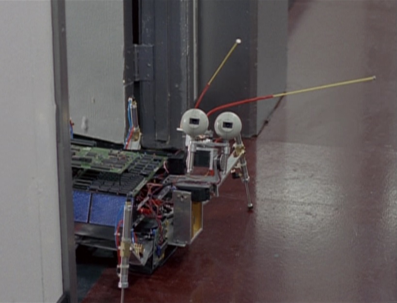 Mulder says “whatever” and hangs up. He takes a roach specimen recovered from the latest, er, crime scene to Bambi’s lab. After pointing out that many roach species can be differentiated on the basis of their genitalia (the more you know), she discovers this one is actually mechanical. She sends him to the Massachusetts Institute of Robotics, where he makes a friend.