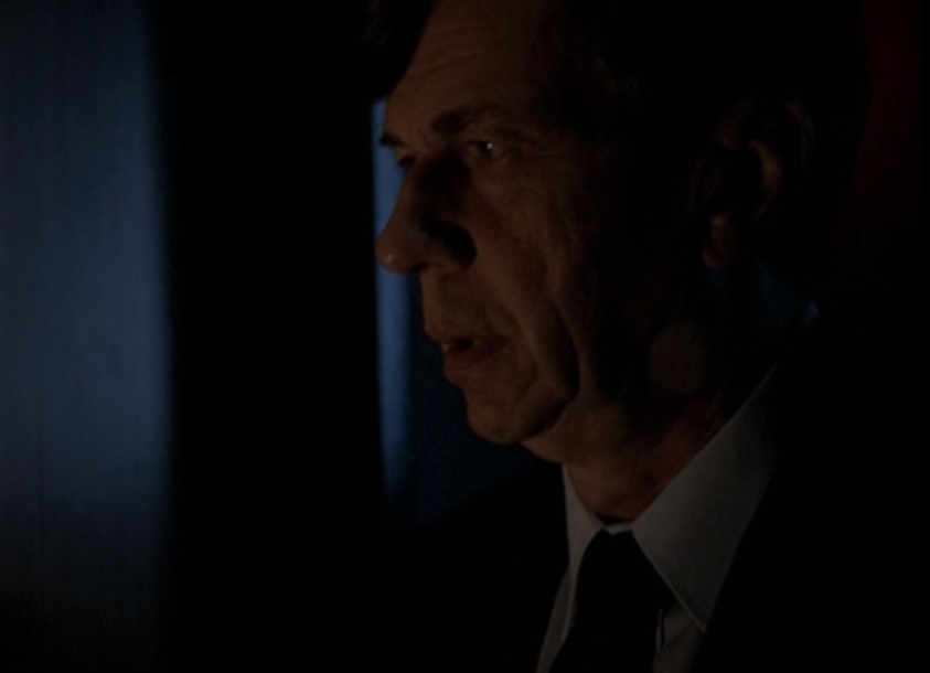 So, in case it wasn’t obvious already, I LOVED this episode. I always love the mytharc ones, even if they tend to follow the same pattern: Mulder gets some info, goes off on a wild goose chase, Scully attempts to cover his tracks and gets called out/suspended/disciplined for it, Skinner frowns and fidgets in his chair like he didn’t know it was coming, and the CSM and his vague yet menacing cohorts brood angstily over the threat of exposure. It’s all clockwork at this point, but it doesn’t mean I don’t enjoy it.