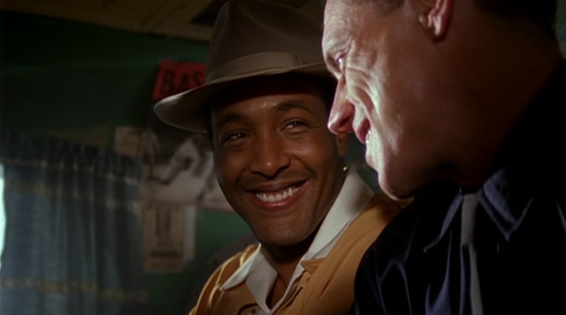 It’s a testament to the power and poignancy of this episode that I’m getting emotional writing it up. This was such a beautiful, warm, affecting outtake from the series mythology and it grasps firmly onto your heart as it rips it in two. The story unfolds like a fairytale, replete with a “once upon a time” sensibility and a clear moral etched into the subtext. The allegories about race and intolerance are clear. Exley is an outcast twice over, condemned to death for leaving his alien kind and facing prejudice in the human world after taking the form of a Black man. I wondered at first if making a talented Black baseball player an alien might be problematic, but it actually seems to underline his humanity. He says that taking on the form of a Black player means he won’t be scouted to the major leagues, thereby evading attention, but he’s also choosing to align himself with a people who were ostracised at the time and who face vicious prejudice from society. The threat of violence for both them and Ex is real—as evidenced in the raid from the KKK, and the fact Ex himself ultimately dies for his choices. Further, the white character of Dales is very much a supporting player, and in equating the aliens’ intolerant ideology with the KKK a clear message is sent about its repugnance.