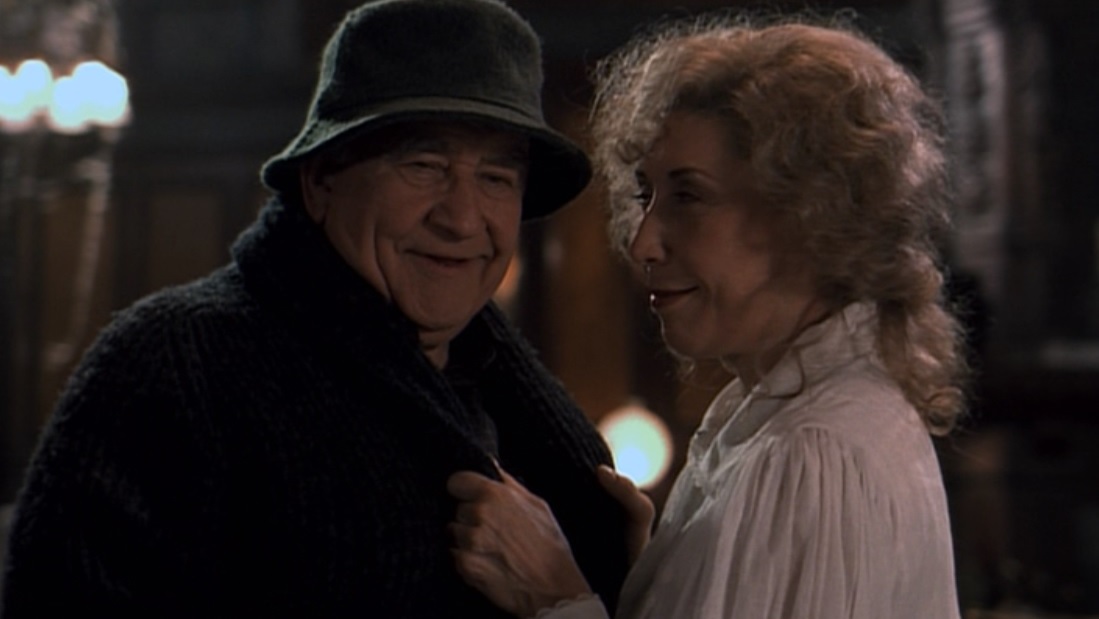 The episode then cuts back to the ghosts, reclining happily in easy chairs in front of the fire. They hold hands as the clock strikes twelve and lament the “two such lonely souls” they’ve just been entertaining. The holiday season is about love, they say, and at least they understand that. Like clockwork, back in DC, our heroes meet at Mulder’s apartment. After a hurriedly-issued disclaimer that they didn’t experience anything in the haunted house but a psychological projection of their innermost, darkest fears, gifts are swapped and smiles exchanged. Love, was it? I wish it was Christmas.