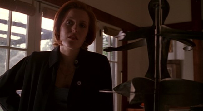 There are times I worry that certain underlying themes in TXF go right over my head, and then there are times they hit you bang slap in the face. Each of these episodes is so heavily weighted on female experiences that I could have written an entire essay on them alone and submitted it even before finishing the season. What strikes me is the multiplicity of experiences represented here: Phoebe’s work in a male-dominated industry (similar to Scully herself); Ellen’s attempts to maintain an illusion of domestic bliss; and Scully’s intensive internal monologue each relate to roles women are expected to perform in various different aspects of their lives, while also illuminating how difficult and indeed damning it can be to do so.