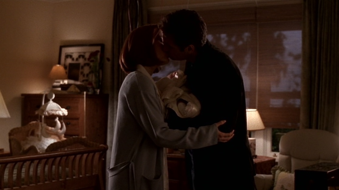 Mulder, whom I should probably note is still unemployed, visits Scully at home. The Lone Gunmen drop off gifts for the little one. Scully shows Mulder the cub, a little boy named William. She says she named him after Mulder’s dad (and also her dad, and her brother, but whatever). They discuss the pregnancy, with Dana saying she feared the how and why and meaning of it all. Mulder says they may have feared what it meant, but they always knew the truth. THIS KID IS SO TOTALLY THEIRS. It is the only logical explanation, and I don’t even care how they want to explain it. Stuff your weird-ass cloning experiments, William is an X-FILES CUB and not just a Scully cub. Our heroes kiss and for once everything at season’s end is frigging wonderful.