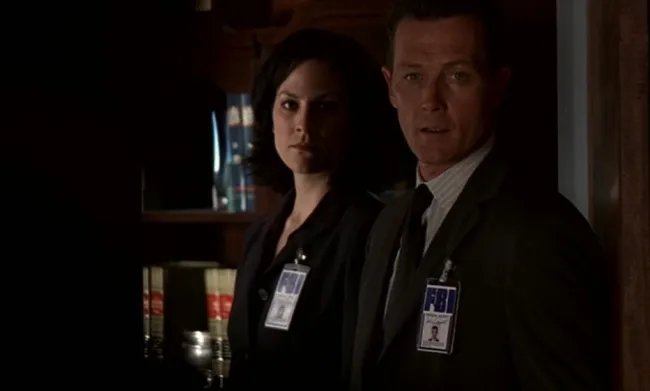 Back in DC, Reyes and Doggett hand in a case report. Kersh is outraged—he doesn’t have any other emotional setting—but pipes down when Doggett tells him he’s under investigation for a certain secret meeting with Knowle and Crane. They were presumed dead after the incident at the Bureau but they’ve now gone missing. Doggett pulls the door behind him and somehow resists dropping a mic.