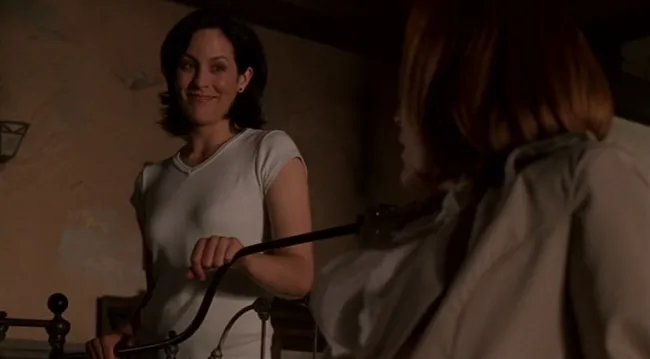 Finally, we get the two-part season finale, “Essence” and “Existence”. The Scully cub arrives and the aliens are kind of thwarted? It’s a bit all over the place, but the last shot of the season makes up for it. Dana has taken maternity leave and her mum throws her a baby shower. She also moves in a nurse named Lizzy to help her prepare for the cub’s arrival. Lizzy, of course, isn’t all she seems. In “Per Manum”, which I’ll write about separately, we learned that Scully’s obstetrician was involved with a company called Zeus Laboratories. This company appeared to be experimenting on human women by implanting them with alien babies. The company’s lab burns down in “Essence”, after alien Billy Miles kills one of the doctors and torches the place. Doggett and Mulder investigate and discover the company’s links to Scully’s former obstetrician, Dr. Parenti, while Scully herself discovers Lizzy is up to something. Lizzy reveals that the company was attempting to create clones using alien DNA from Roswell. Scully’s baby is, she says, very special—it’s human but exhibits no human frailties. Alex pops up again to confirm as much and says the baby poses a threat to the aliens. Mulder and Doggett enlist Reyes to get Scully somewhere safe to give birth. Billy attacks them at FBI HQ, but with the help of Alex himself (no less) Scully and Reyes escape. Billy is supposedly mulched in a garbage truck but of course isn’t actually dead.