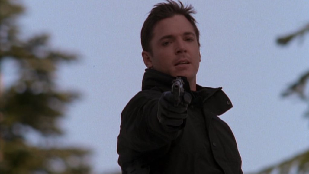 Up in Canada, Krycek parachutes into a winter wonderland in search of the CSM. Unfortunately for him, the CSM has motion detectors and a shotgun and Alex narrowly avoids becoming minced meat. He’s come to take the CSM back to the Syndicate (there, I used the correct name, y’all can shut up now) cos there’s dirty work needs doing and all their other assassins are dead, useless, or in Alex’s case have been demoted to chauffeur. In the US, they meet the WMM. He says there’s a “situation” and it’s in everyone’s interest to get it sorted.