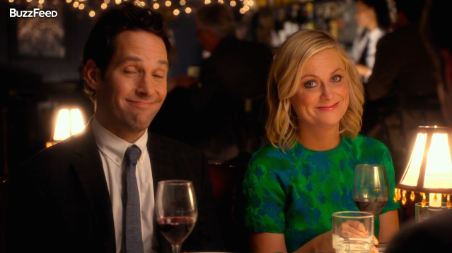 The movie starts with Molly (Poehler) and Joel (Rudd) having dinner with their unhappily married friends Karen (Ellie Kemper) and Kyle (Bill Hader), regaling them with the story of their meet-cute and subsequent relationship roller coaster. “It’s kind of a corny, romantic comedy kind of story,” chirps Molly, “the only difference is it’s not a movie! It’s our real life!” Cue fourth wall break.