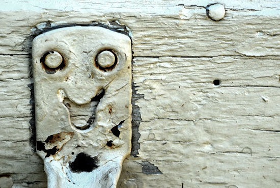 From Wikipedia, Pareidolia “is a psychological phenomenon involving a vague and random stimulus (often an image or sound) being perceived as significant.” It commonly occurs as face-like patterns in inanimate objects, fifty instances of which can be seen after the break, so you can start developing empathy for cheese graters and alarm clocks and houses and things.
