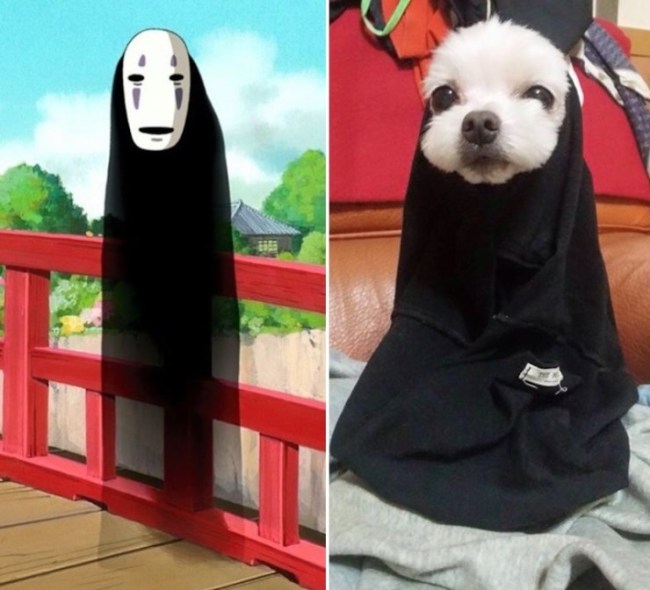 That feel when this puppy cosplays better than you do with just a black t-shirt and their widdle face. Ugh. (via Fashionably Geek)