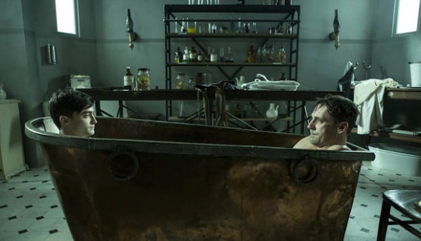 Well we’ve seen Daniel Radcliffe in a bathtub in Harry Potter and the Goblet of Fire but this is something different all together. It’s a shot from Radcliffe’s new film with Mad Men star Jon Hamm, A Young Doctor’s Notebook. In it, Radcliffe plays the younger version of Hamm’s character. And this is extremely bizarre. (via Collider)