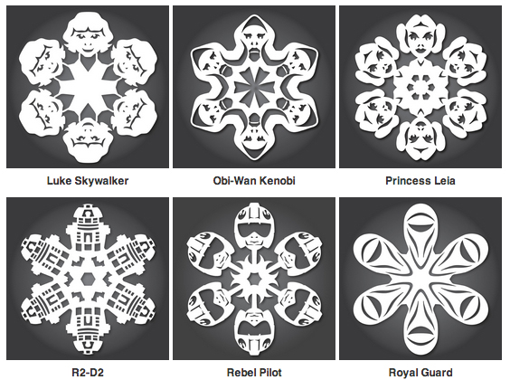 PDFs of these and a whole slew of other Star Wars snowflake designs (I particularly like the X-Wing) are available for free at Anthony Herrera Designs. (Laughing Squid)