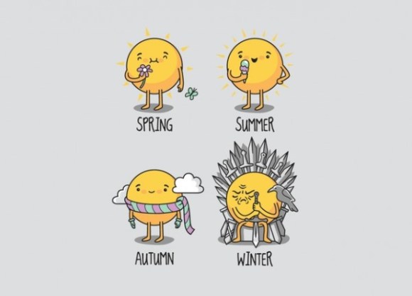 Eduardo San Gil Rodriguez designed this Game of Thrones-themed seasons t-shirt, available on Threadless. Man, winter is intense. (Fashionably Geek)