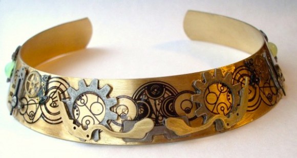 The Gallifreyan writing on this Doctor Who collar tells about the discovery of the Time Vortex. This particular piece has already been sold (sorry), but Etsy seller TimeMachineJewelry has other Doctor Who items available on their shop. (via Fashionably Geek)