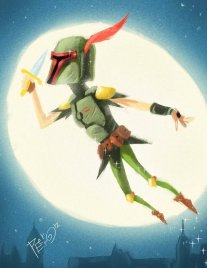 Our Disney/Star Wars mashup of the day is Peter Fett, by DeviantArtist peerro. Second starship to the right and straight on ’til morning! (via /Film)