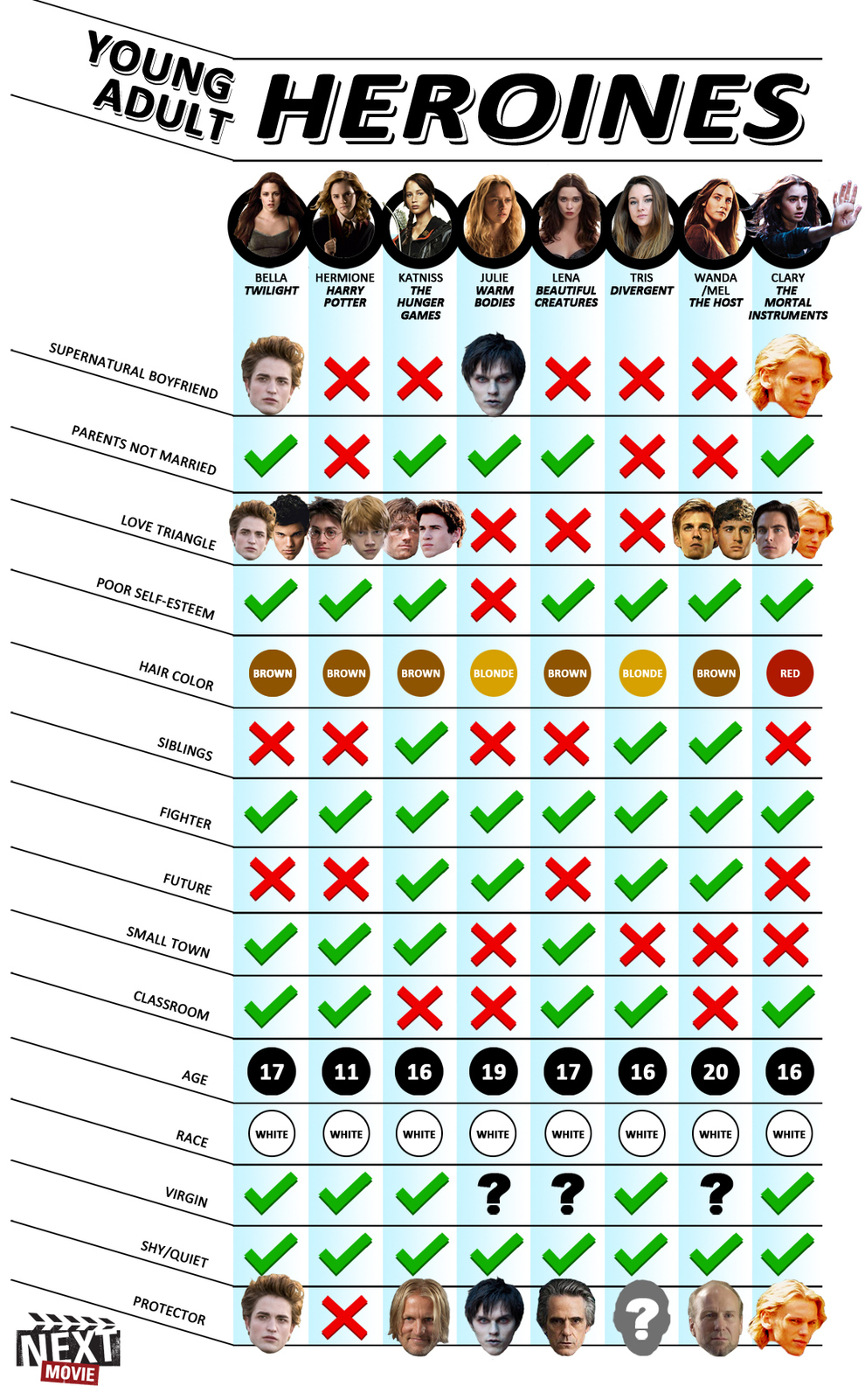 NextMovie‘s infographic comparing young adult heroines really hammers home the lack of diversity, doesn’t it? Click here to embiggen. (Buzzfeed)