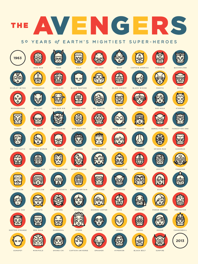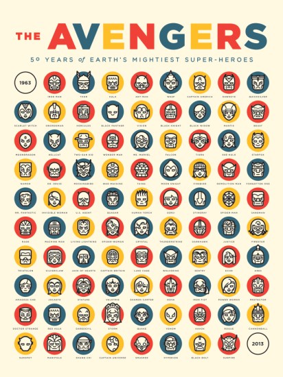 50 years of Avengers. One poster. Click the image to embiggen. (By Michael Mateyko, via io9)