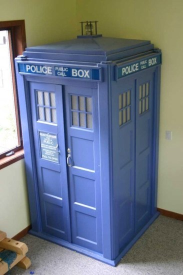 Apparently this living room TARDIS actually is bigger on the inside—because it opens into the next room. Clever girl… (by Scarfweaver, via Nerd Approved)