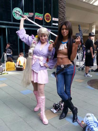 To give credit where credit is due: “Poca-Han-Solo” is Aleu Moana, and Jedi Rapunzel is her friend Jennifer. (Seen at WonderCon, via Fashionably Geek)