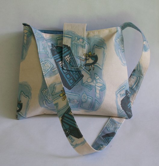 We’ve seen the whimsical Disney characters-as-companions illustrations of artist Karen Hallion, but with these bags from Etsy seller Crafty Ginger Mama, we can now carry our sonic screwdrivers around and enjoy the time traveling princesses and protagonists. (via Fashionably Geek)