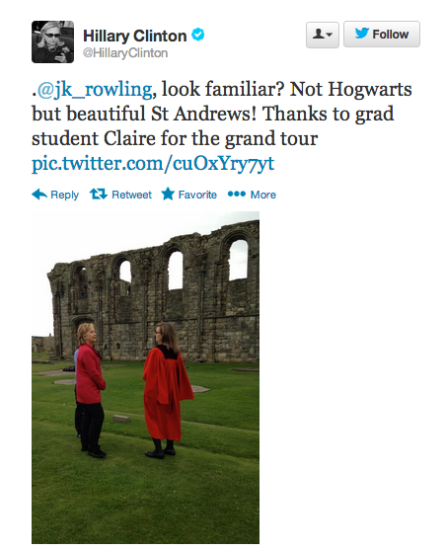Hillary Clinton tweeted at J.K. Rowling. So that’s pretty cool. (Jezebel)
