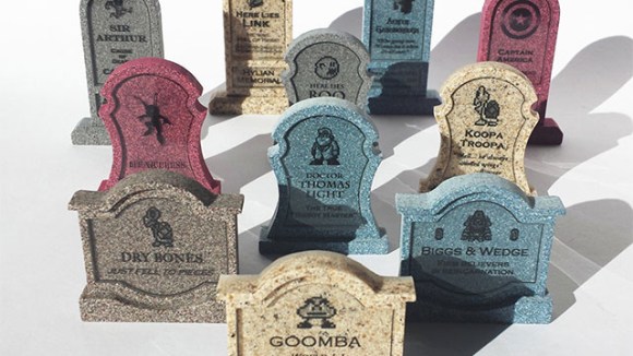 Video game character tombstones for fallen heroes and villains. From Etsy seller ChinookCrafts. (via Kotaku)