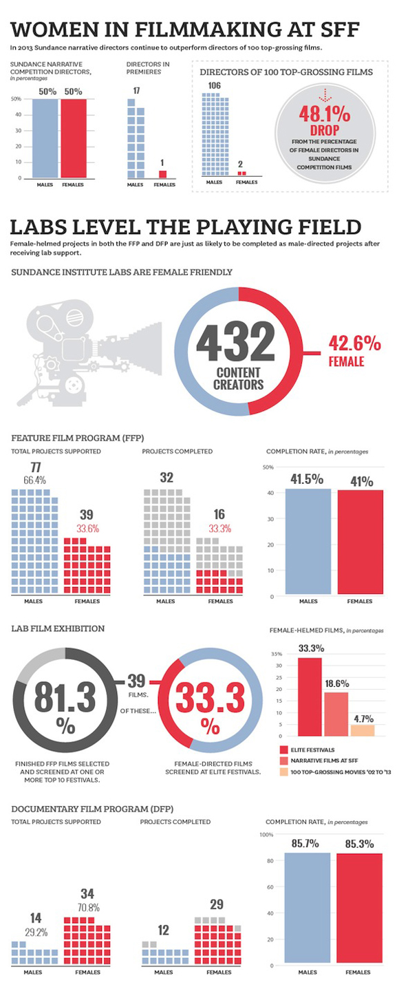Even though women are not particularly well-represented in terms of directors at this year’s Sundance, the festival wants to support women filmmakers. This infographic examines the work of male and female Sundance alums. (Via Indiewire)