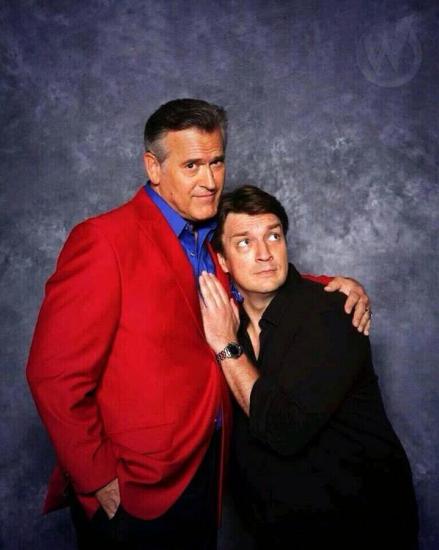 Things We Saw Today: Nathan Fillion Pulls A Superhero Movie Damsel Pose With Bruce Campbell