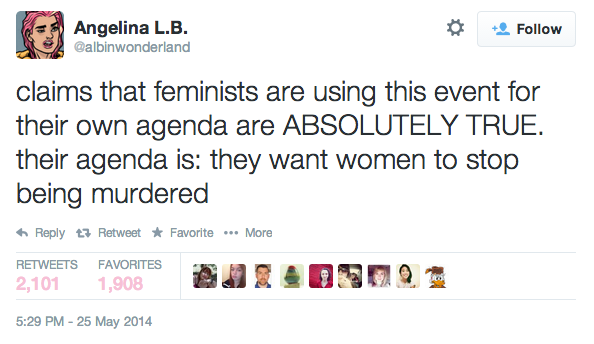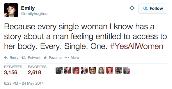 #YesAllWomen rose to trending on Twitter this past weekend after the world learned of a shooting spree on the University of California, Santa Barbara campus. The suspect, now dead, killed six and left behind horrifying video evidence in which he credits his hatred for women as motivation for murder. We’ve collected a few essays and personal declarations made by individuals online in the wake of the news.