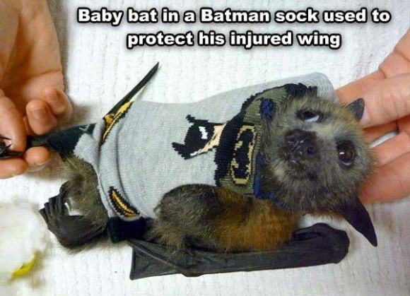 Things We Saw Today: A Baby Bat Swaddled In a Batman Sock