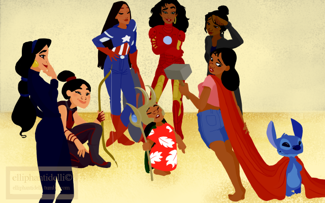 This art by elliphantidelli of Disney POC (Princesses of Color) as the Avengers has been circulating around Tumblr, and we love it a lot, yes we do.
