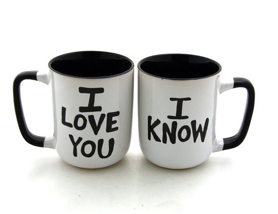 To keep things canon with these romantic Star Wars mugs, you have to use twice in a row. Switch mugs with each other for the second use, and whoever has the “I know” mug on that go-round must drink sarcastically. (via BoingBoing)