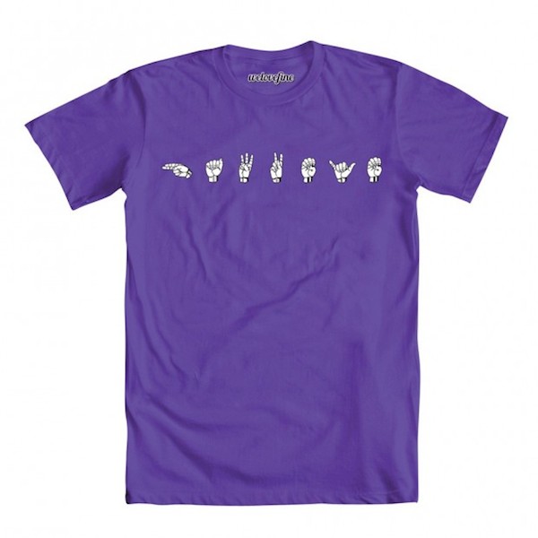 Comics are slowly getting better about representation and the latest issue of Hawkeye is showing it. This new shirt by WeLoveFine merges sign language and comics as flawlessly as Matt Fraction and David Aja. (via Fashionably Geek)