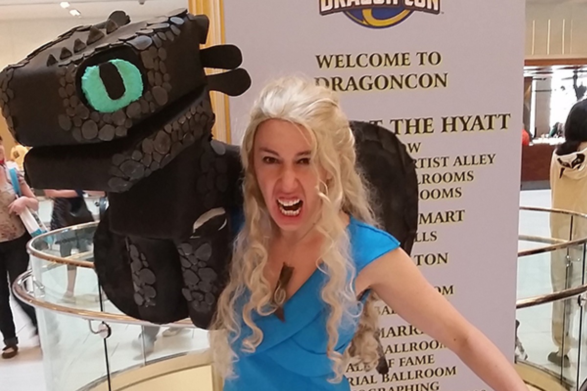 Super-rad cosplayer Casey Renee Cosplayisn’t cool with how jerky Daenerys’s dragons have been as of late, so she imagined a world where our Khaleesi is Mother to the cutest dragon of all – How to Train Your Dragon‘s Toothless! (via Fashionably Geek)