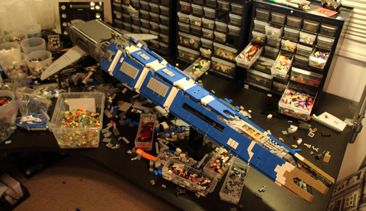 Check out this fan-made LEGO replica of an EVE Online Hurricane battlecruiser, complete with a hangar bay full of little bitty drones. (built by Imgur user Dinklebob, via Massively)
