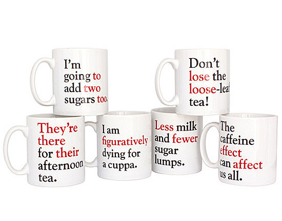 The Literary Gift Company speaks to the wordsmith (and anglophile) in us all with these awesome “Grammar Grumble” mugs that hilariously point out common grammar mistakes while demonstrating correct grammar. LOVE. The six-mug set is £44.00.