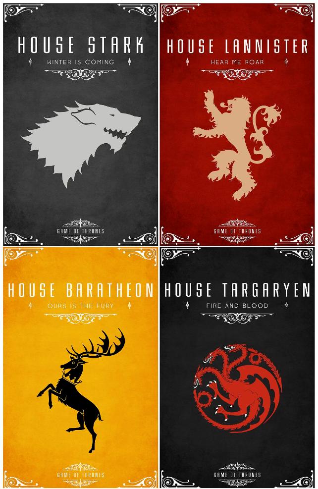 Tom Gateley created these house-specific posters for Game of Thrones. (at The High Definite)