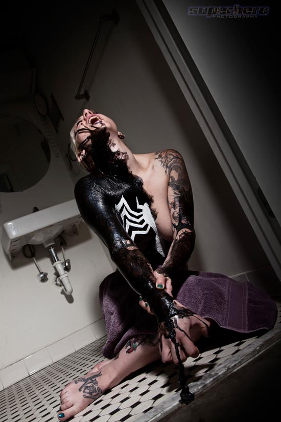 This (slightly NSFW) Venom cosplay was taken by Superhero Photography photographer Adam Jay. It was also banned by facebook, which is a shame because it’s pretty damn awesome (via Blastr):