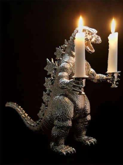 And here is Godzilla, carrying a candelabra. (via Dangerous Minds)
