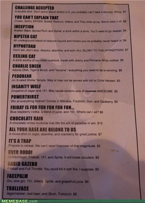 The AFK Tavern in Everett, Washington offers up this actual, real menu of geek-friendly drinks. This exists, and we wish we could take a field trip. (At Geeks Are Sexy)