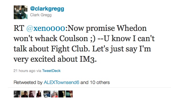 What’s all this crazy talk about Joss Whedon killing off Agent Coulson in The Avengers? We love Agent Coulson! Clark Gregg, who plays Coulson, seems to have other plans! (at Topless Robot)