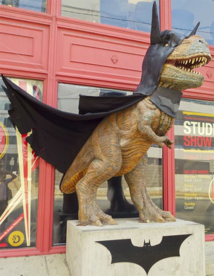 It is Batman. And a dinosaur. Dinoman? Batosaur? Look, the Batcave already has a robotic T-Rex. This guy is just trying too hard. (Flickr via I Heart Chaos)