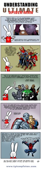 Bun-Toons’ take on the Ultimate Spider-Man “controversy”. (At Ty Templeton Art) (Click to enlargen)