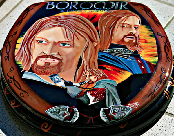 This Boromir toilet seat cover was created by Shannon Oglesby as part of their Pimp Your Pooper project. There’s not really much more I can say. (Geeks Are Sexy)