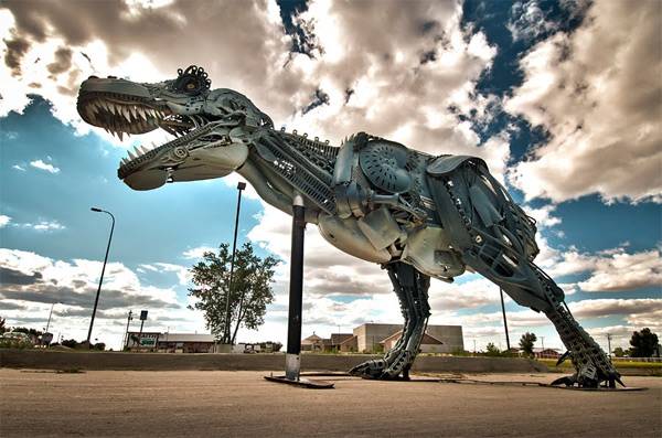 Scrap metal T-Rex scupture. *drools* (by John Lopez, via Nerd Approved)