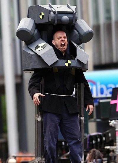 Item one in this correlation: Paul Giamatti doing some pre-post-production work to play the Rhino on the set of The Amazing Spider-Man 2. (Comics at the Movies)