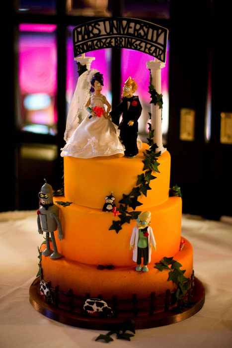 Apparently, there’s some sort of nuptial-type thing happening tomorrow. Has it been in the news? Anyway, Blastr has suggested some sci-fi-themed cake toppers for this lovely couple. Think they’d like them? Here’s a Futurama cake topper.
