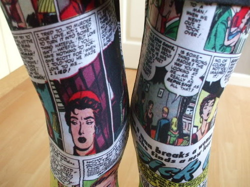 Semi-related: Awesome comic strip tights! (At Diary of a Death Starlette)